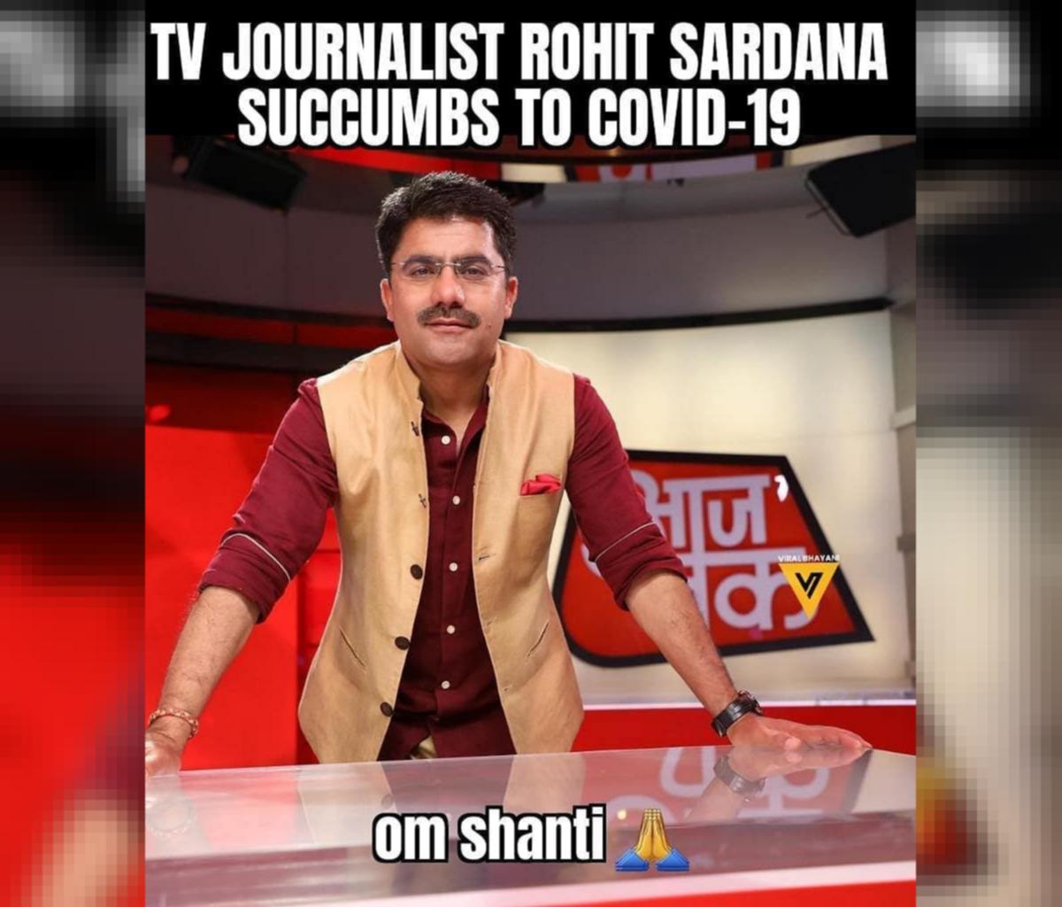 .rohit sardana succumbed to the deadly covid 19 infection on friday zee news editor in. He reportedly died of a heart attack. Full of energy, passionate about india's progress and a kind hearted soul, rohit will be missed by many people. His untimely demise has left a huge void in the media world. A renowned indian television anchor, rohit sardana,41, passed away on a number of indian journalists as well as others are paying their heartfelt tribute to the late sardana.